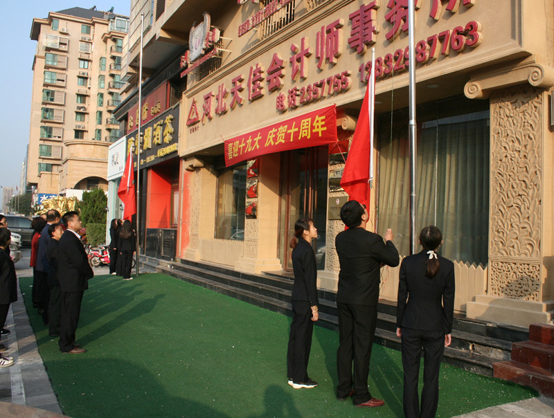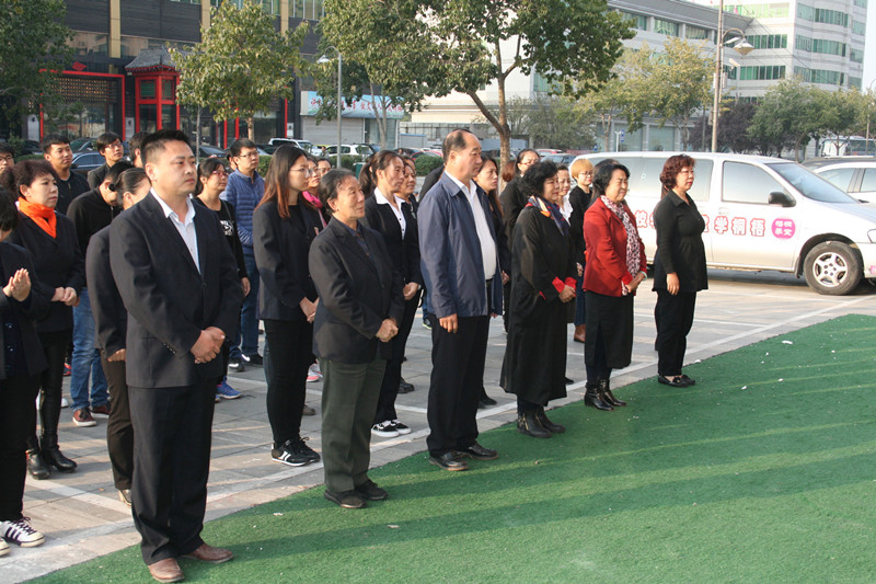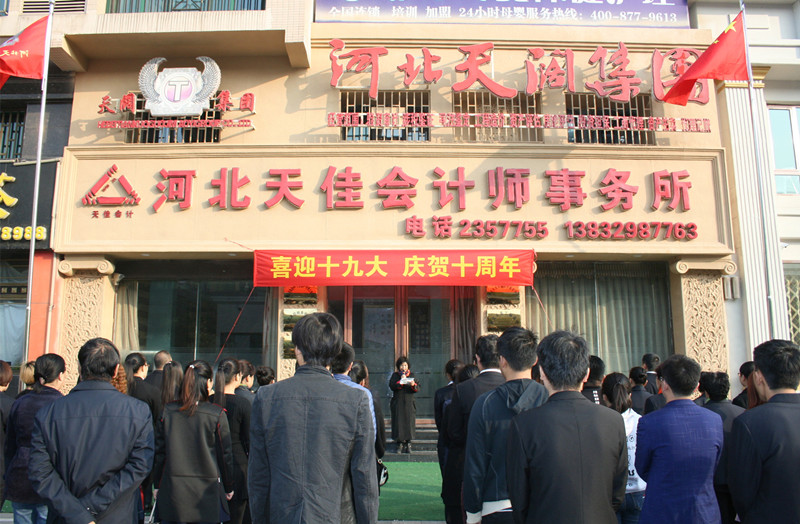 2017年11月16日,再过两天就是党的十九次代表大会胜利召开的日子,又恰逢河北天阔集团成立十周年之际,为预祝十九大圆满成功,庆贺天阔集团成立十周年,上午8时,唐山市路北区翔云道街道办事处于广钊书记、唐山市路北区翔云道街道办事处肖国春副书记、唐山市女企业家协会王立新会长、河北天阔集团党总支书记、董事长、总经理赵义平女士,以及天阔集团领导和全体员工欢聚一堂,举行庄严的升旗仪式,意义重大而深远!这既是对全体员工进行爱国主义和集体主义教育,增强队伍凝聚力、向心力的重要形式,也是我们深入加强非公党建,推进 “两学一做”活动的一项重要内容,必将进一步激发和增强我们的爱国热情和主人翁责任感及使命感,并将对我们的工作产生积极的推动作用。举行升旗仪式是迎接十九大最庄严、最直接的庆祝方式,也是展现我们良好形象的重要窗口,我们要更加紧密地团结在以习近平同志为核心的党中央周围,进一步增强政治意识、大局意识、核心意识和看齐意识,把满腔爱国热情和报国之志转化为努力工作的强大动力,要立足新起点、满怀新希望、注入新动力、焕发新生机,撸起袖子加油干,干出个人新进步、干出事业新精彩、干出天阔新局面,为实现打造“综合服务性集团航母”的愿景,为实现“天阔梦”贡献出我们的力量!